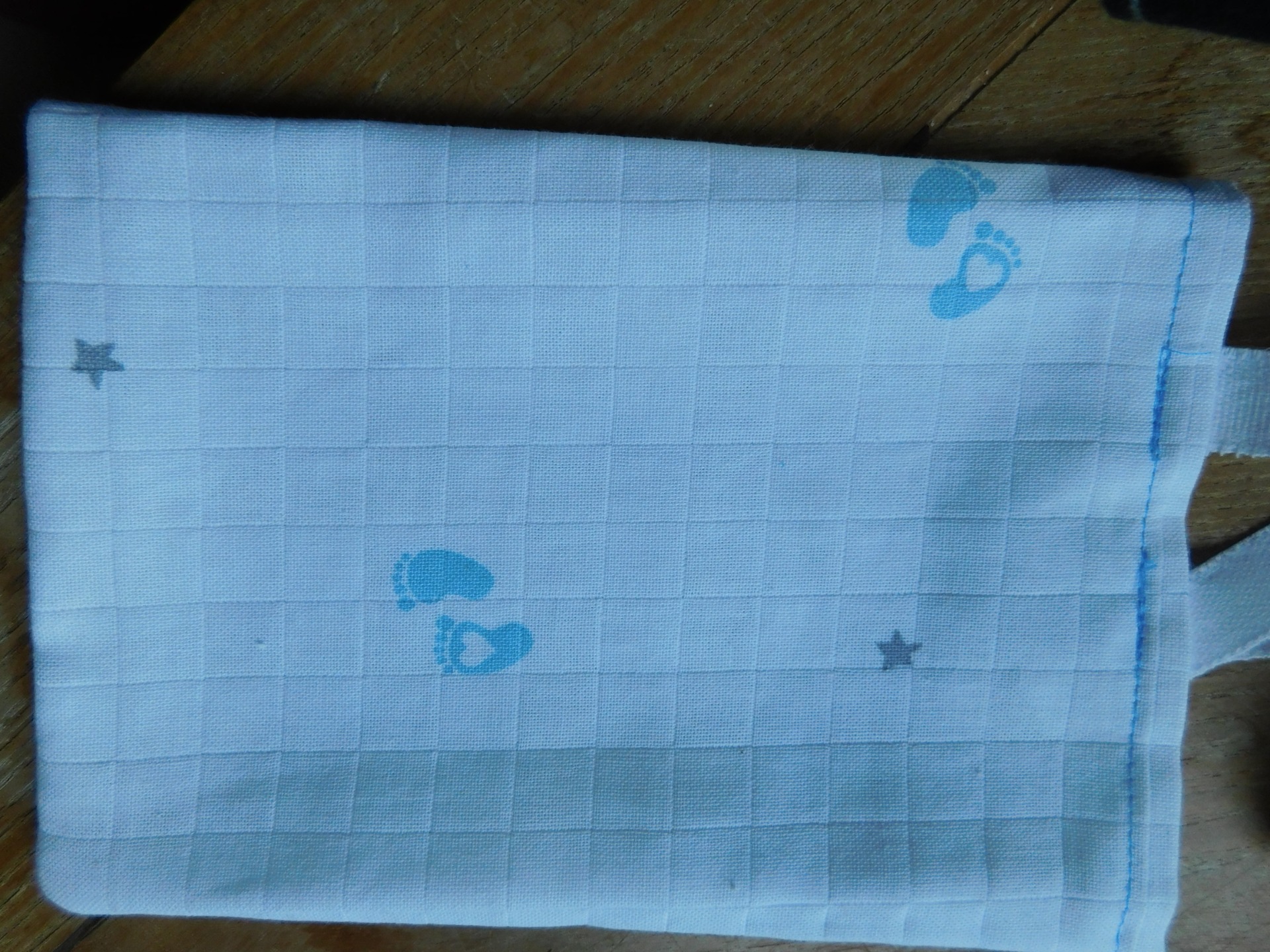 Cousu par mes soins, ce petit pochon, bleu ou saumon, réutilisable vous permettra de transporter votre commande en toute sécurité.
